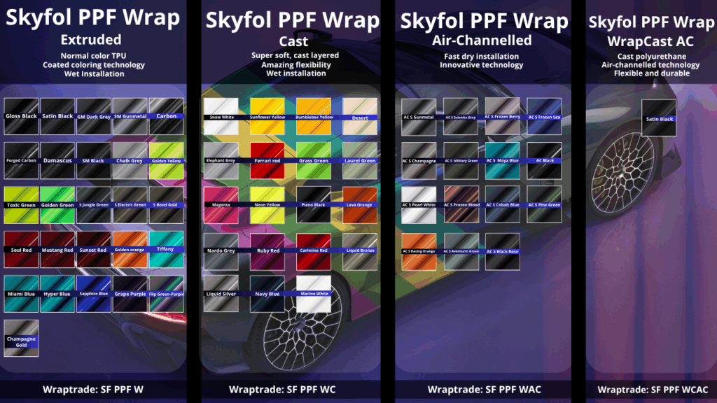 La gamme Skyfol PPF Wrap propose 48 couleurs vibrantes et s’élargit constamment !